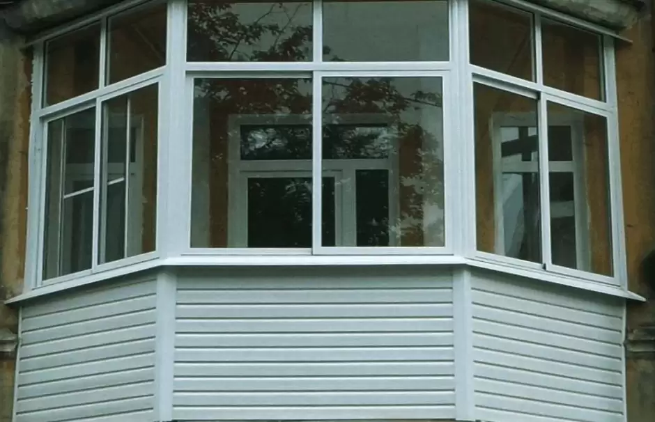 Эркерное остекление данного балкона выполнено холодным типом окон с раздвижным открыванием всех створок. Профиль - алюминий, сверху ряд из глухих створок. Дополнительно установлена москитная сетка. Также проводили отделку парапета профнастилом. В комплекс работ входило: