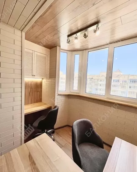 Отделка эркерной лоджии ламинатом и стеновым паркетом